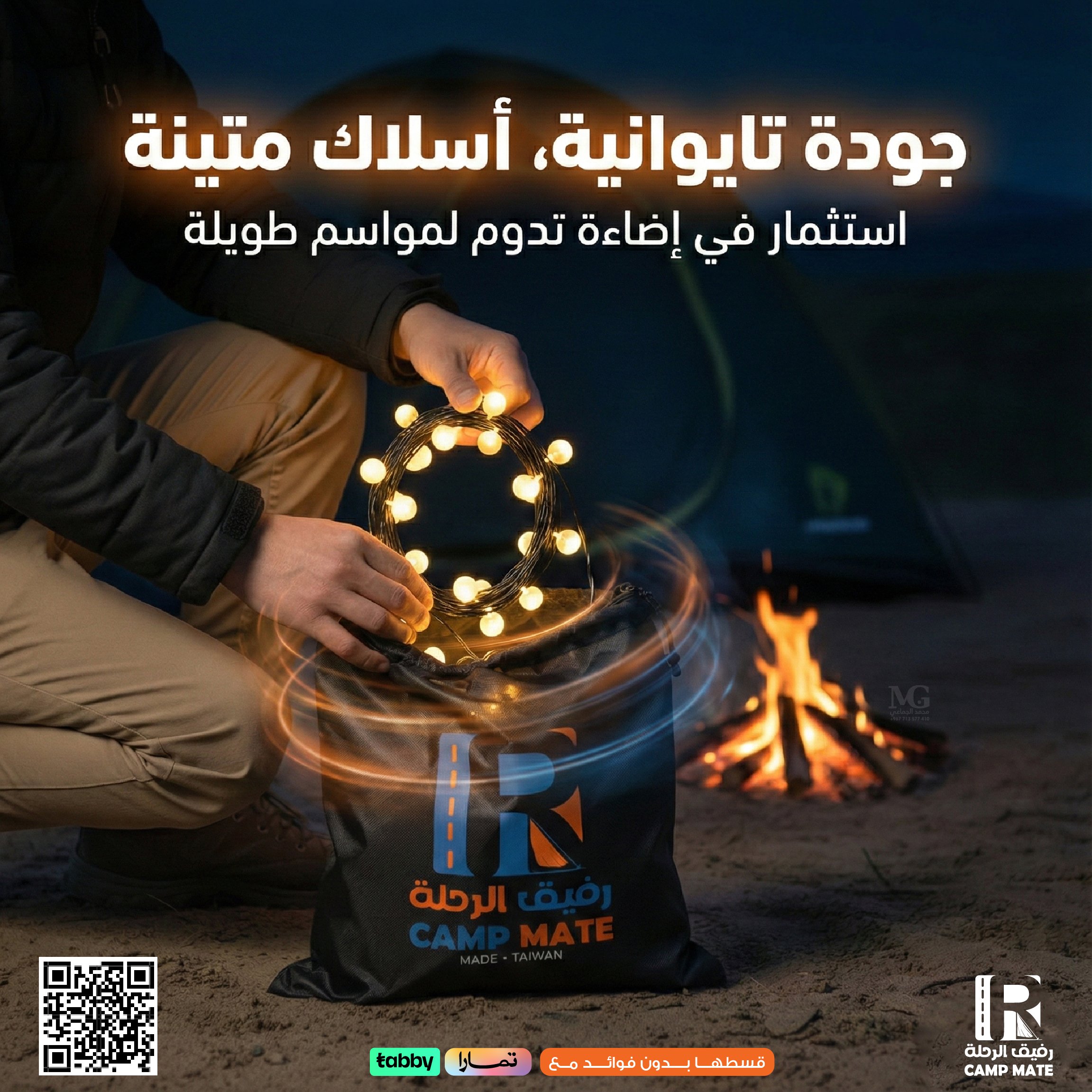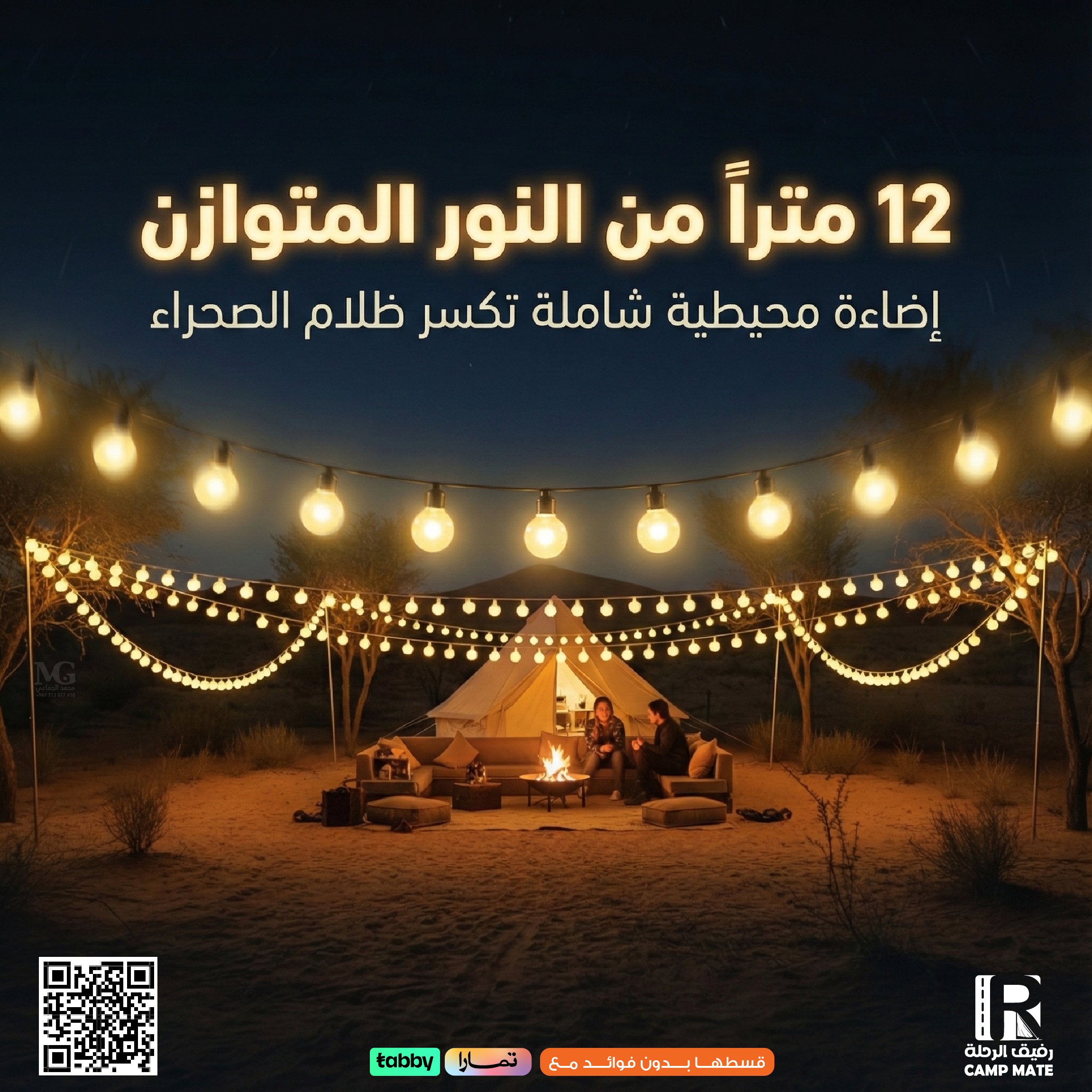 💡 فن إضاءة الصحراء: الدليل الشامل لعقد إنارة رفيق الرحلة (12 متر) – قوة تايوانية ومرونة مزدوجة